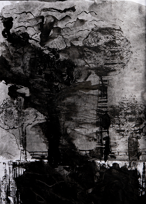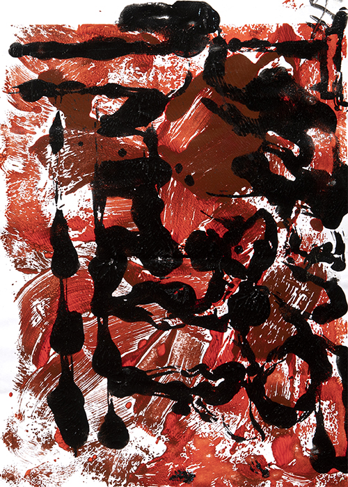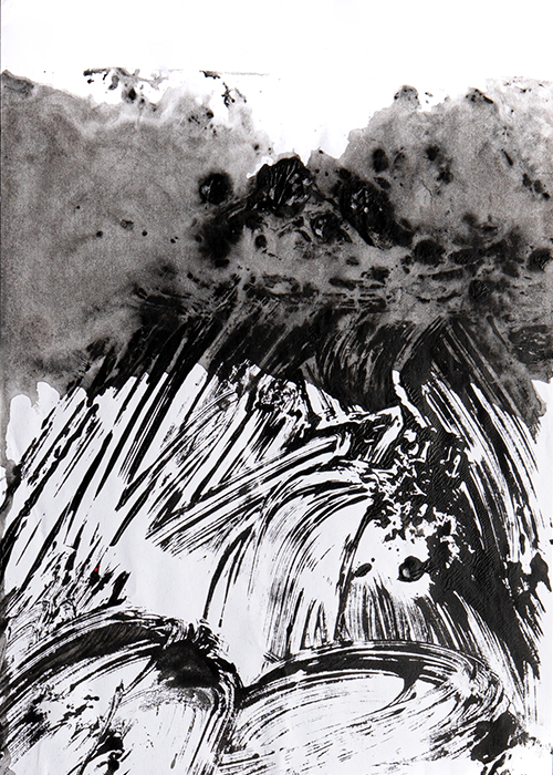 Dimension : 29,5 x 41,7 cm - Peinture à l'encre étalée sur papier dessin